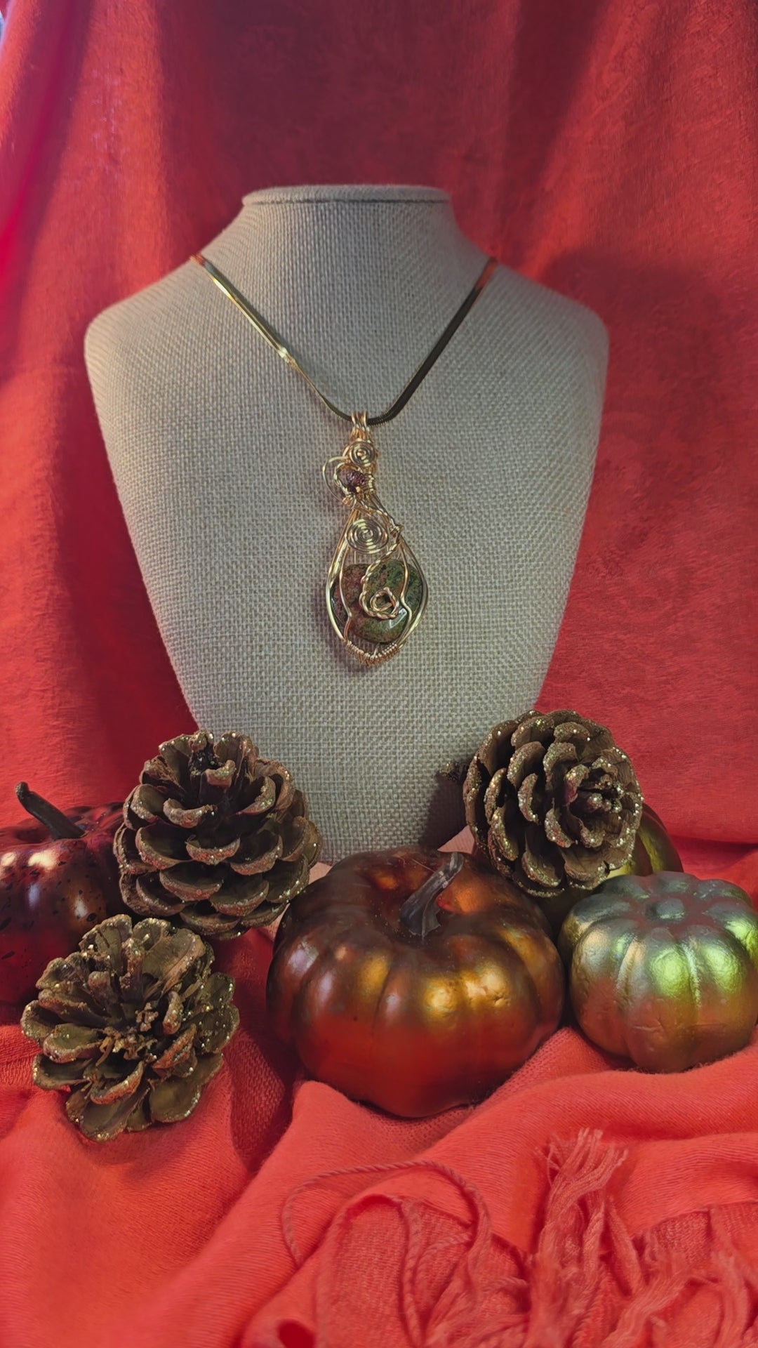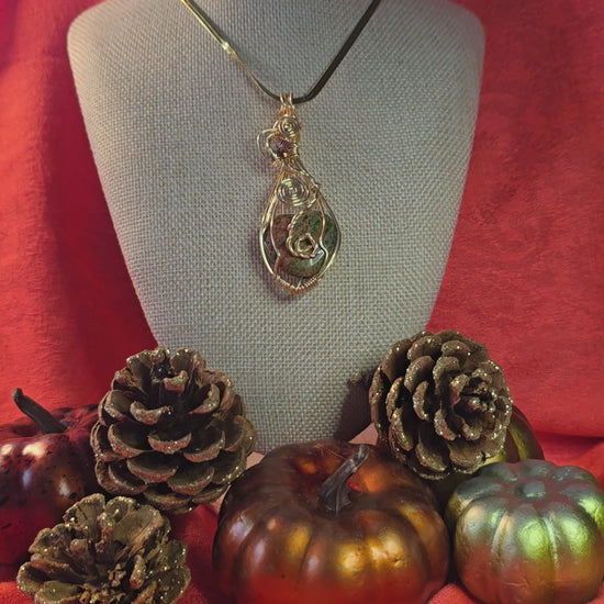 Collar alambrado con wire weaving dorado cadena en stailess steel y la piedra Jasper