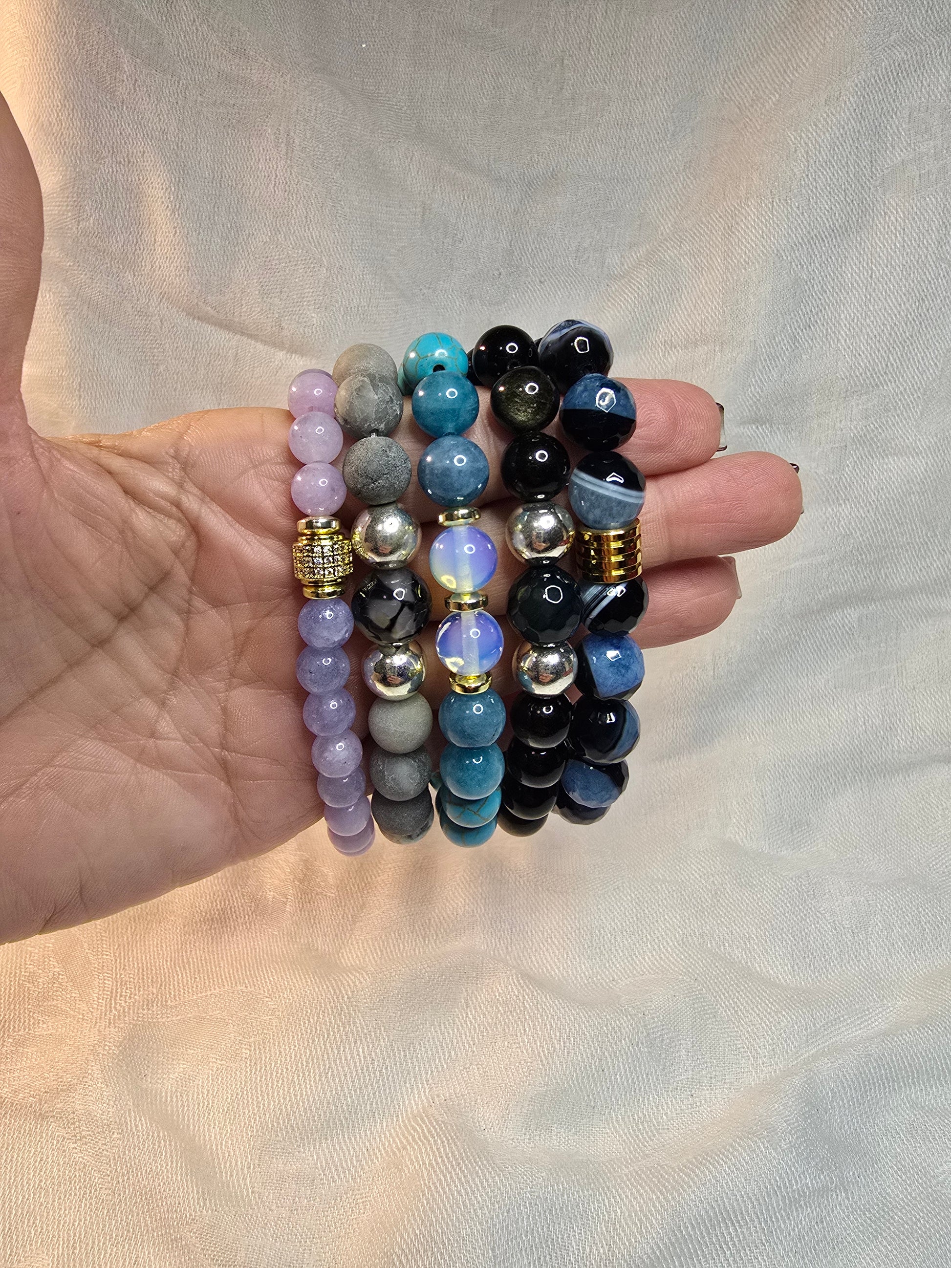 Pulceras elasticas para caballeron hechas con cuarzo .