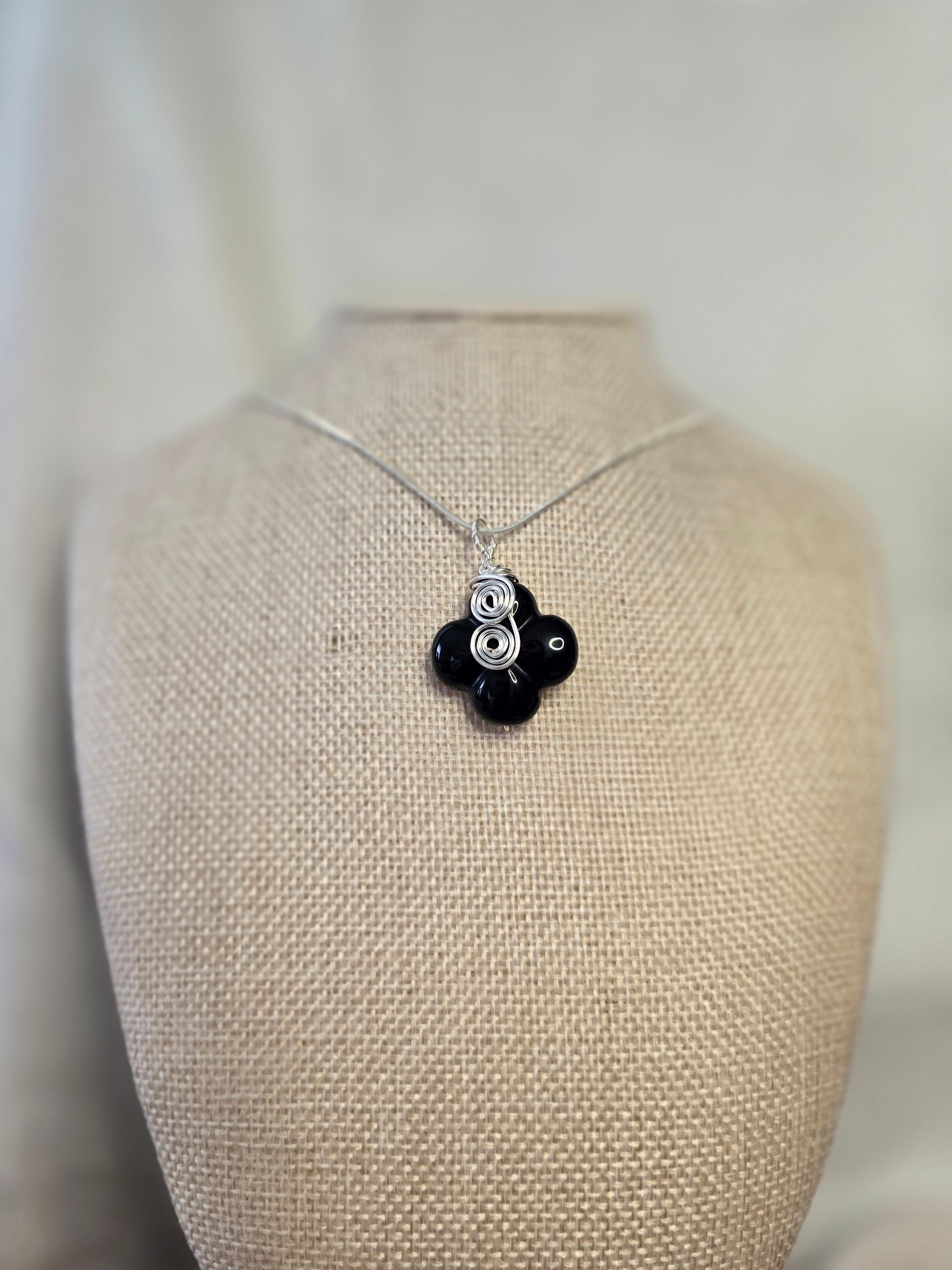 CADENA STAINLESS STEEL PLATA CON BLACK ONIX.